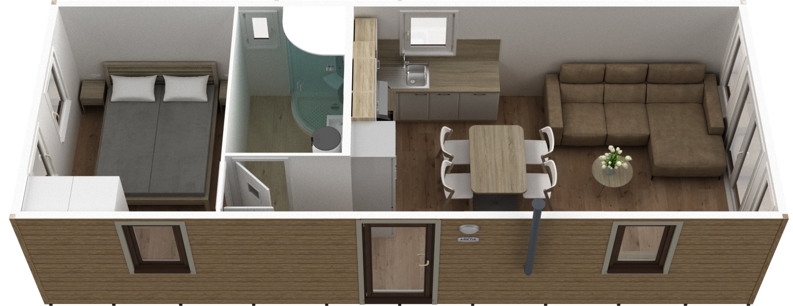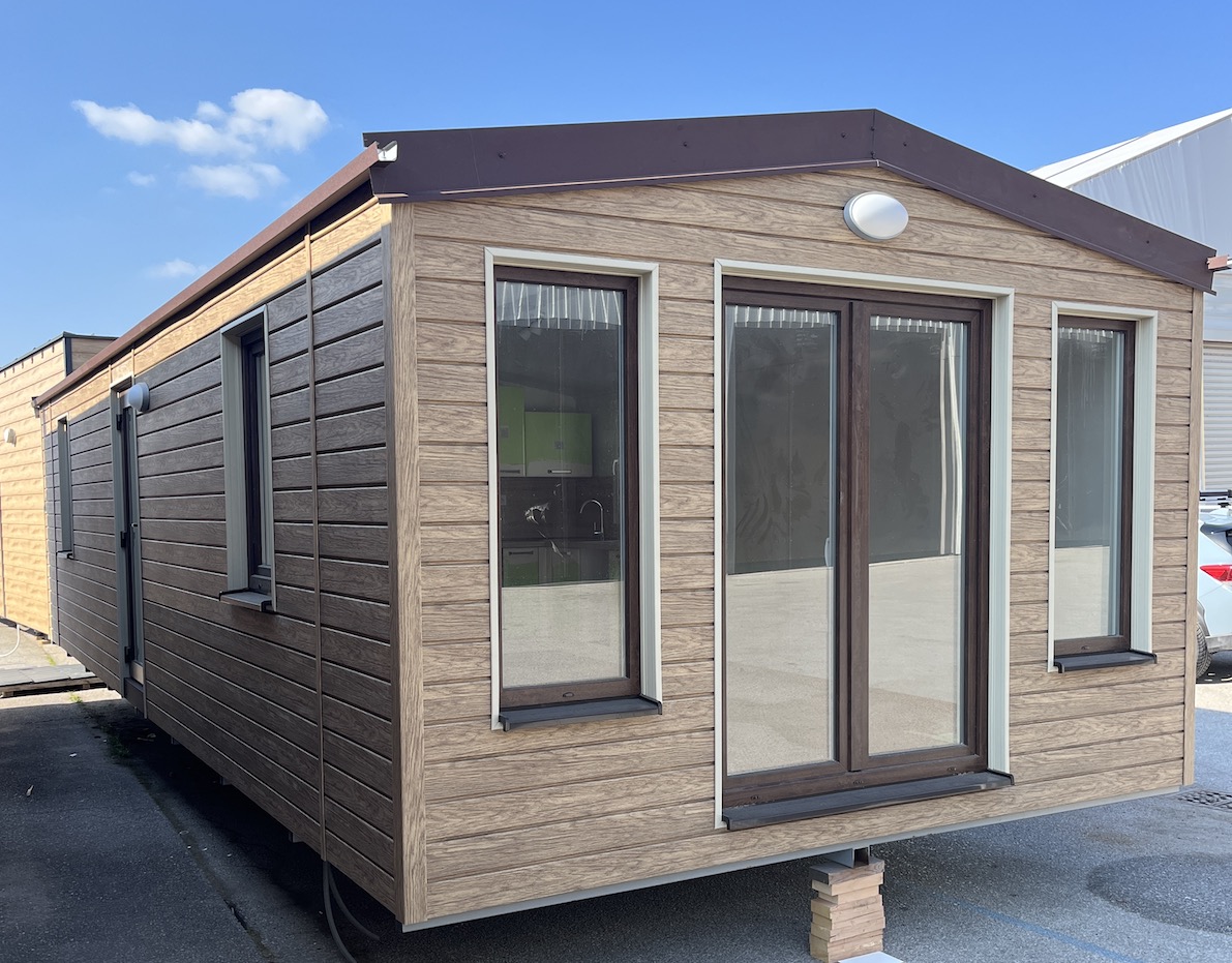 Mobilný dom 10x4 m s fasádou Decosiding - Honey Oak