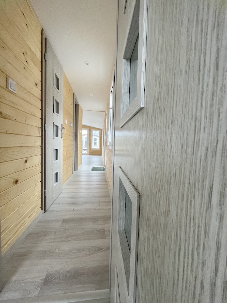 Zjednoťte štýl! Zvoľte jednotnú, farebne príbuznú škálu materiálov podláh, interiérových dverí a nábytku. Váš mobilný dom bude pôsobiť harmonicky.