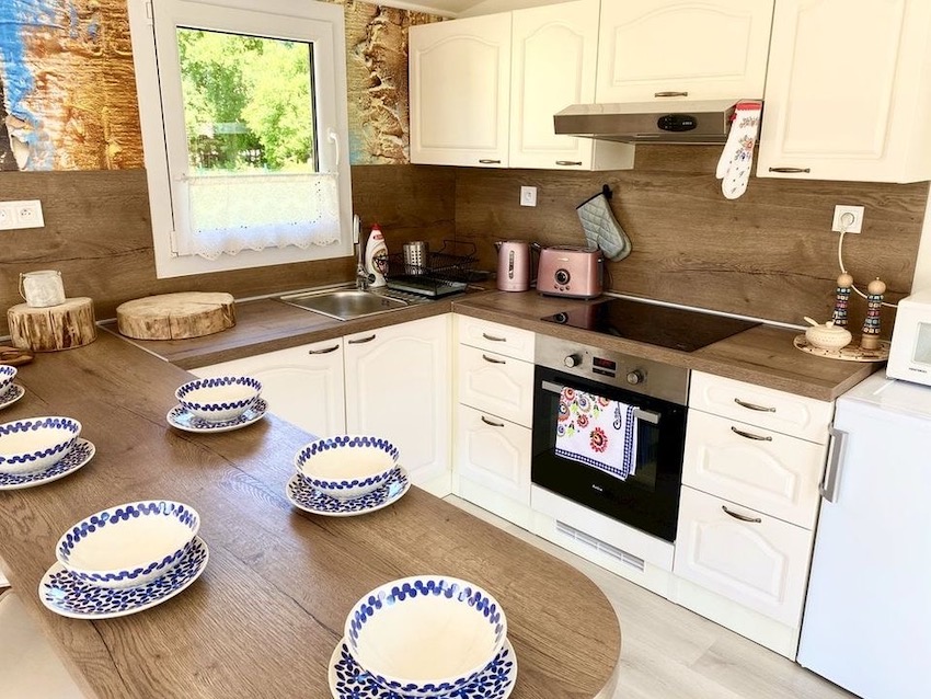 Katy je kuchyňa vo vidieckom štýle, ktorá dodá vášmu mobilnému domu domácu atmosféru a pohodlie.