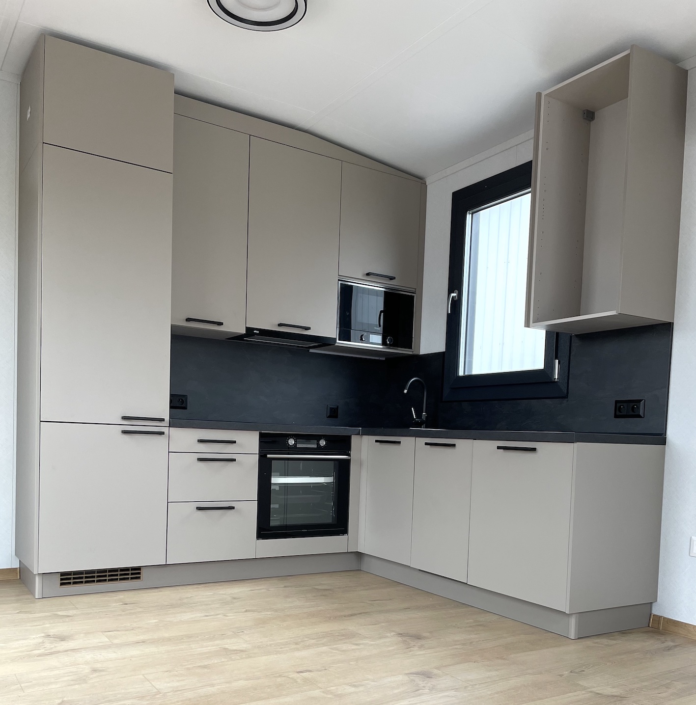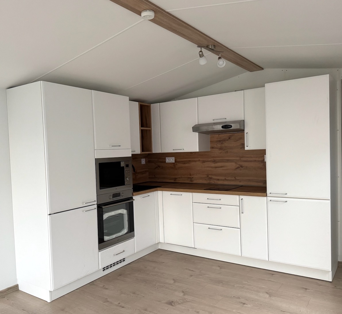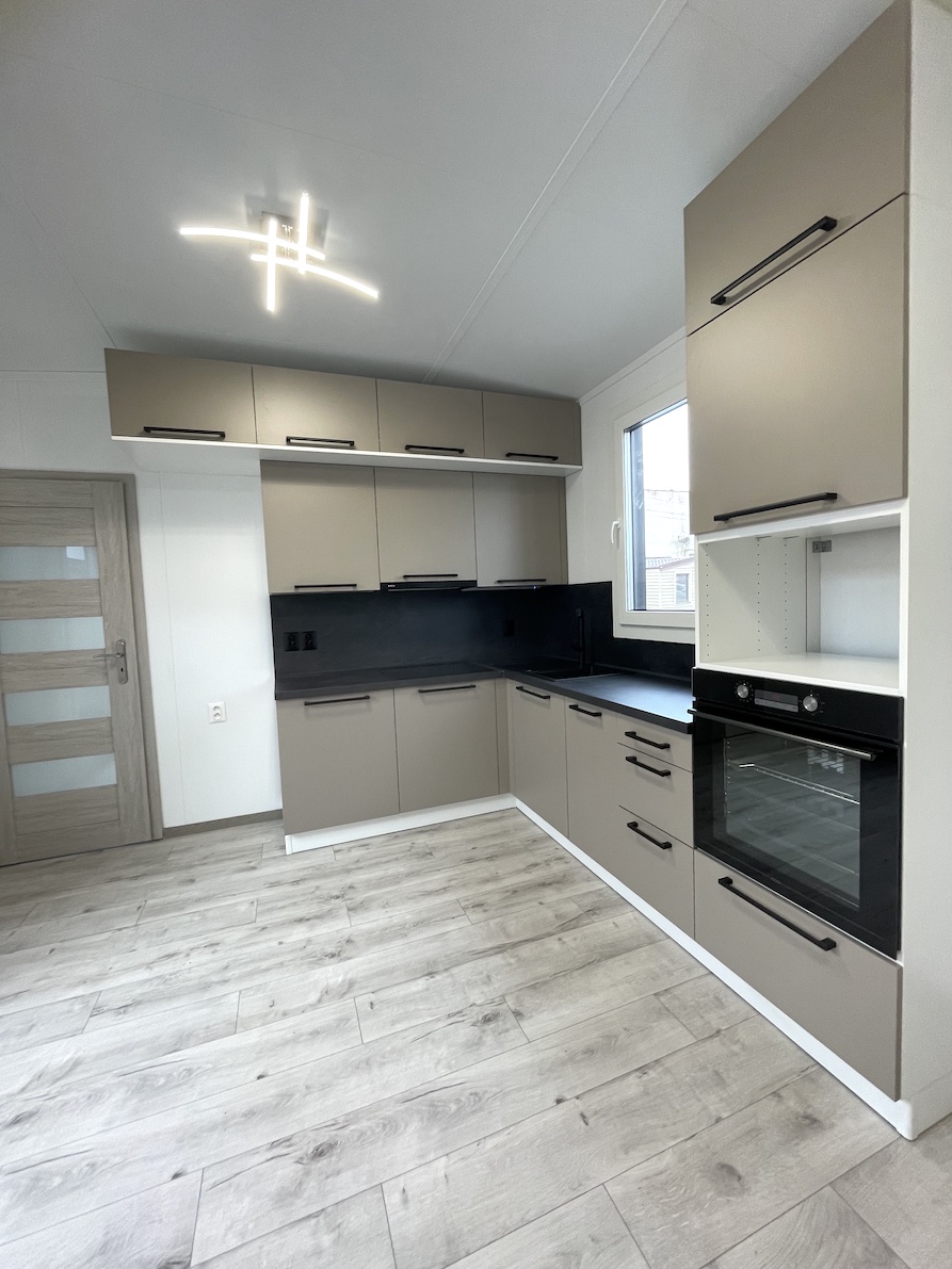 V mobilných domoch Super Arktik ® nájdete kuchynskú linku v tvare I, L alebo U. Každá kuchynská linka je štandardne vybavená kvalitnými zabudovanými spotrebičmi. V základnej výbave je sklokeramická alebo indukčná varná doska, teplovzdušná rúra, digestor a drez s batériou.