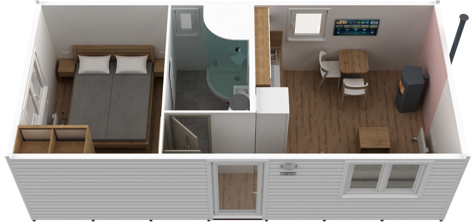 Mobilný dom Super Arktik ECONOMY 8x4 kombinuje moderný dizajn, praktickú dispozíciu a kompletné vybavenie pre pohodlné bývanie alebo rekreáciu. Rezervácia domu je možná už dnes.