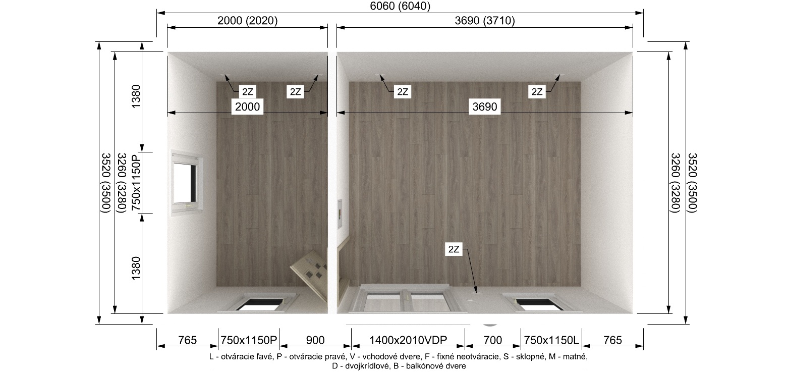 • Rozmer (DxVxŠ) 6 x 3.5 x 3.2 m.
